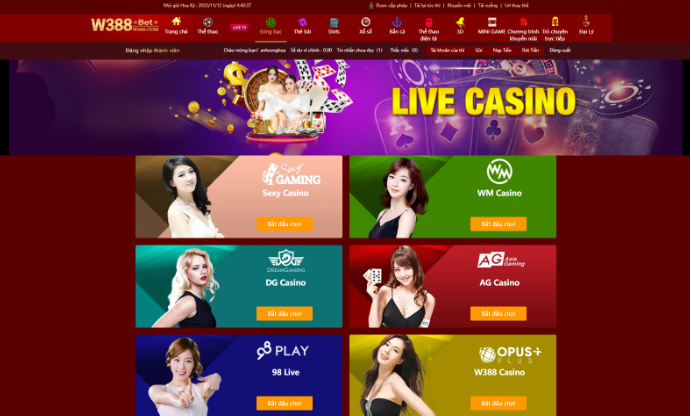 Không thể thiếu tại bất kỳ nhà cái uy tín nào chính là hệ thống Casino trực tuyến. Tham gia tại nhà cái W388 bạn sẽ được trải nghiệm những trò chơi quen thuộc như Blackjack, Baccarat, Roulette, … Không chỉ được tham gia vào những trò chơi cá cược, bạn còn được ngắm nhìn những dealer xinh đẹp quyến rũ.