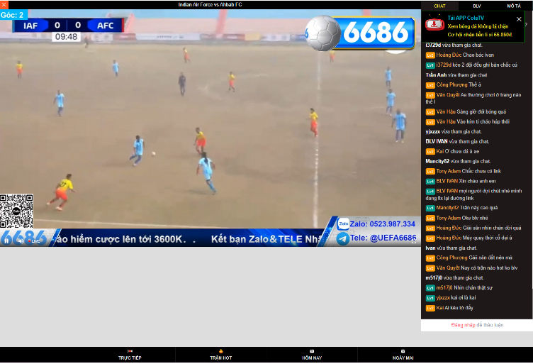 • Bước 4: Tận hưởng xem bóng đá trực tuyến với bình luận viên chất lượng. Ngoài ra bạn còn được thảo luận với rất nhiều fan hâm mộ khác qua khung chat.